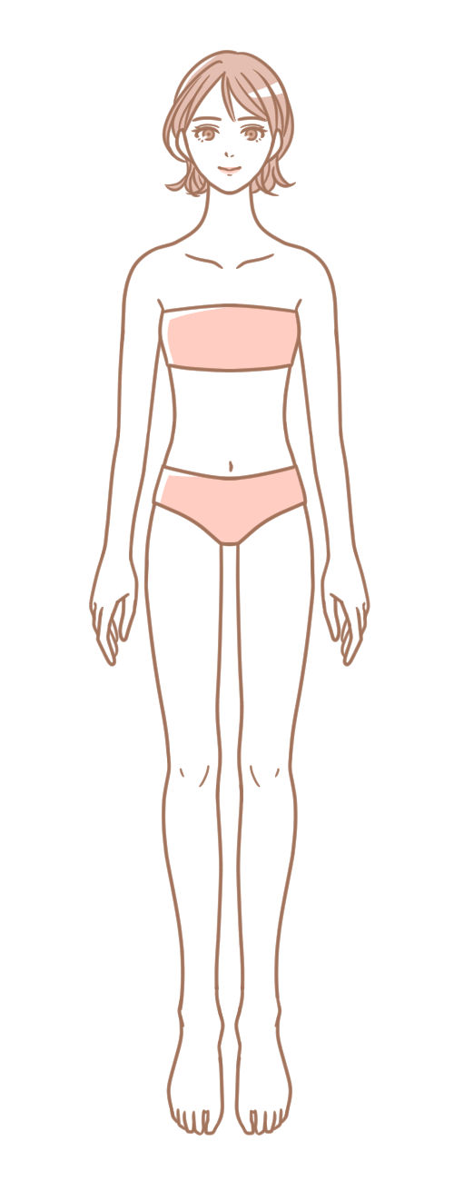 体型…なで肩で洋ナシ体型、骨が細くて華奢